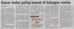 Ini bermakna lebih 1,300 wanita didiagnosis menghidapi kanser serviks dan lebih 750 wanita mati akibat penyakit ini setiap hari.